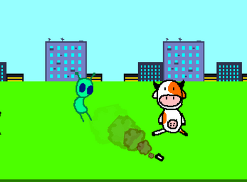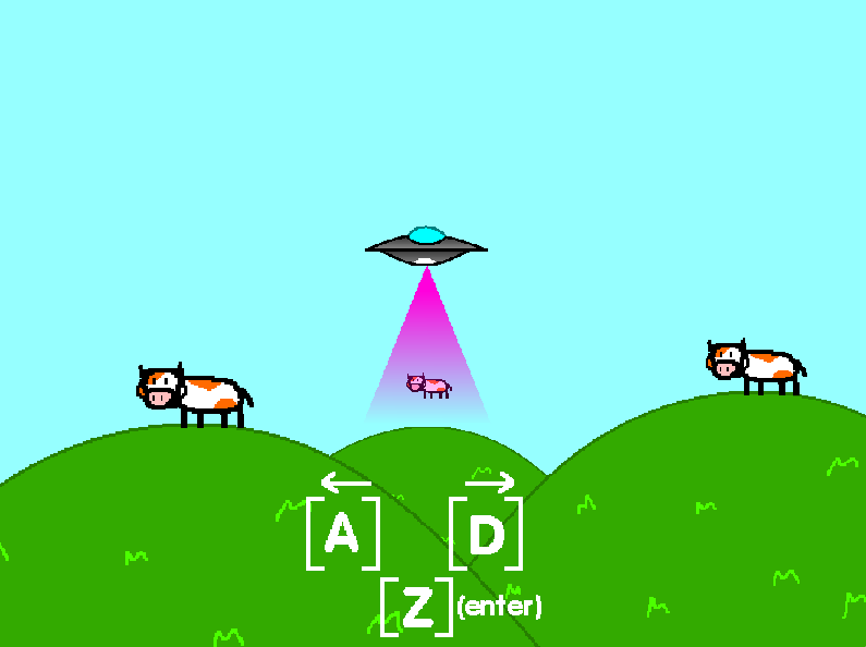 Ты - инопланетянин, который прилетел на землю, чтобы собрать коров. Собирай коров! Давай! Это твоя работа. Вперед! Я верю в тебя!